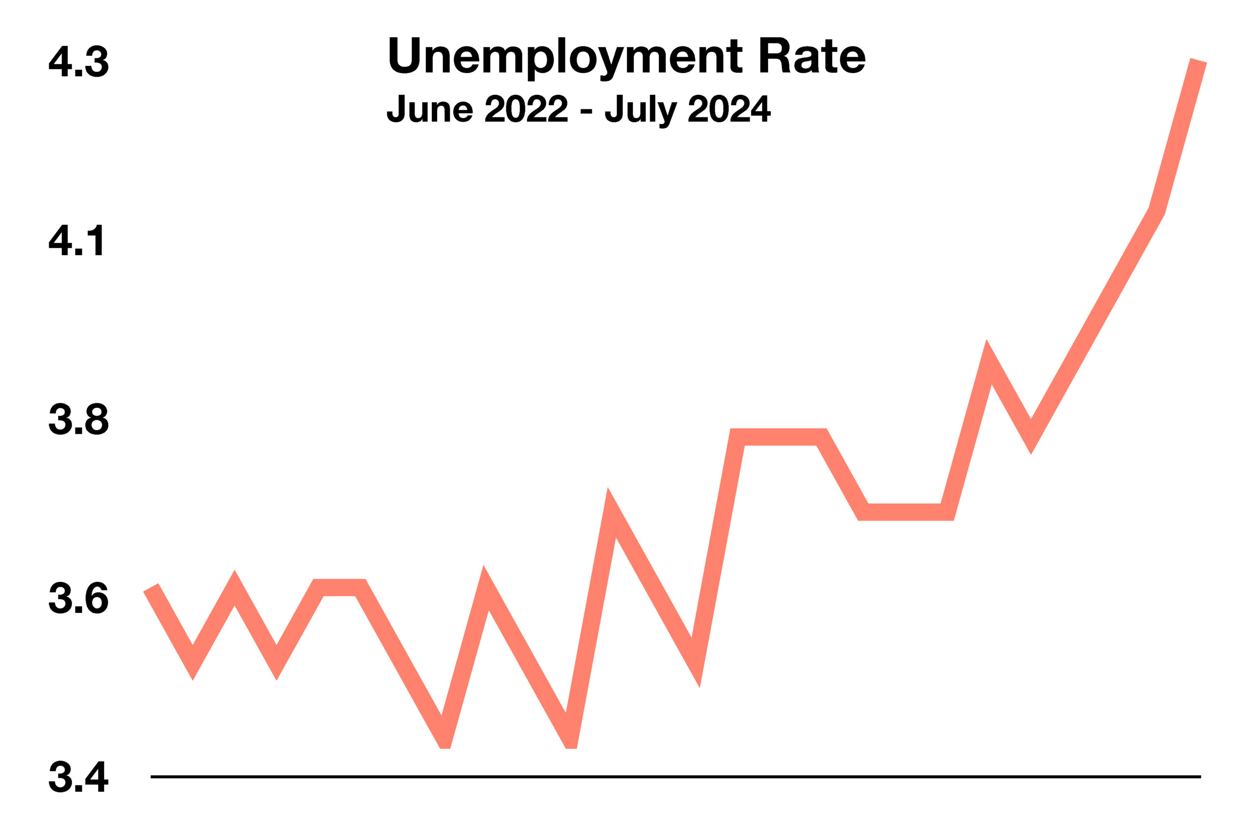 Unemployment claims rose for the ninth consecutive week in July, the longest stretch since 2018, raising the unemployment rate to 4.3%. The data suggests that people are having rising difficulty in finding a job, as companies pare back on hiring and initiating layoffs.